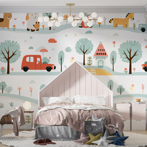 VIVAWALLSThe Kawaii Car & Animal Doodle Pattern is a charming and gentle design. This all-over, repeating pattern features cute, hand-drawn cars, styliz...
