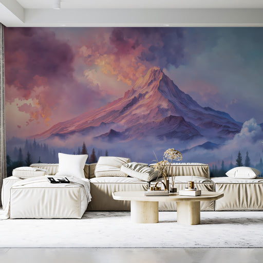 Vollständige Details anzeigenSunset Peak & Purple Clouds Mural - Ethereal Mountain Vista Decor