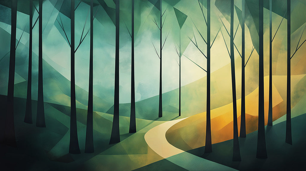 Fügen Sie eine Sicherheitsmarge von 6 bis 10 cm hinzu. Die Gesamtfläche wird in Quadratmetern berechnet und auf die nächste ganze Zahl gerundet.Abstraktes grünes Waldwandbild im Wohnzimmer | Grün, gelber Wald
