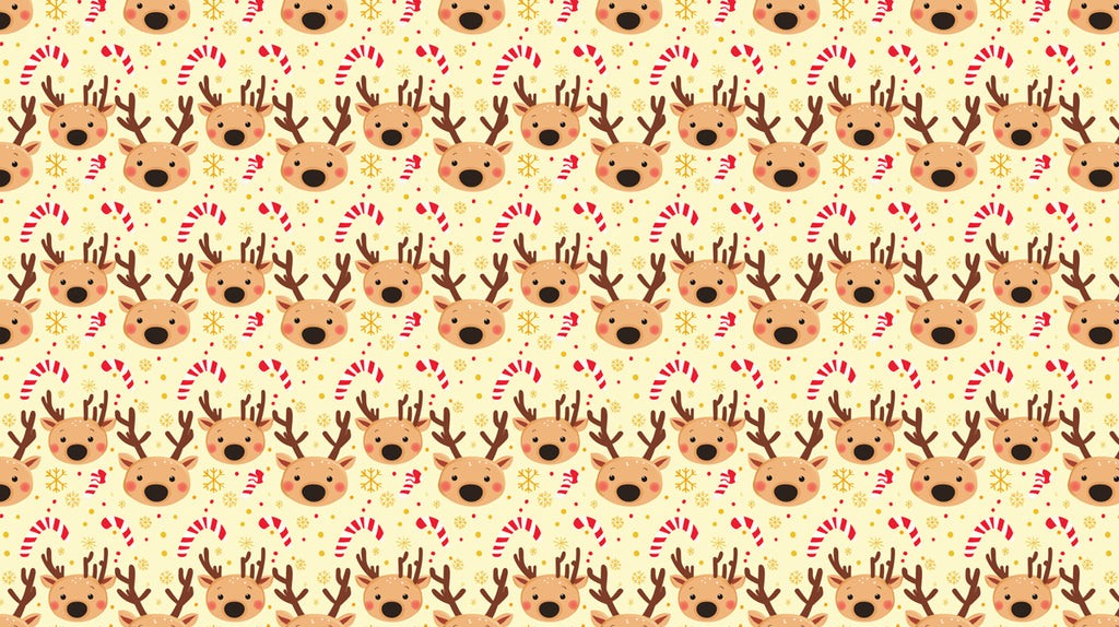 Fügen Sie eine Sicherheitsmarge von 6 bis 10 cm hinzu. Die Gesamtfläche wird in Quadratmetern berechnet und auf die nächste ganze Zahl gerundet.Cute Reindeer Head and Snowflake Pattern Wallpaper | Cheerful Christmas Faces, Yellow Background, Playful