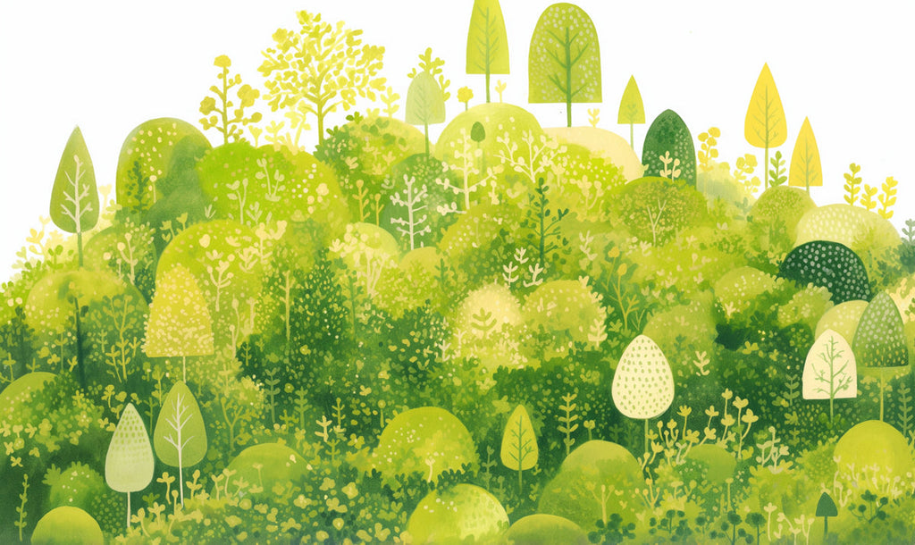 Die Inhalte und die Wirkung dieses Hintergrunds: Dieser Hintergrund zeigt einen üppigen und lebendigen grünen Wald mit einer Vielzahl von Bäumen und Pflanzen in verschiedenen Grüntönen und Gelbtönen. Die Szene ist voller Leben und Energie und schafft eine erfrischende und belebende Atmosphäre. Der Gesamteffekt ist, als würde man in einen magischen Wald eintreten, was das Zimmer stärker mit der Natur verbindet.