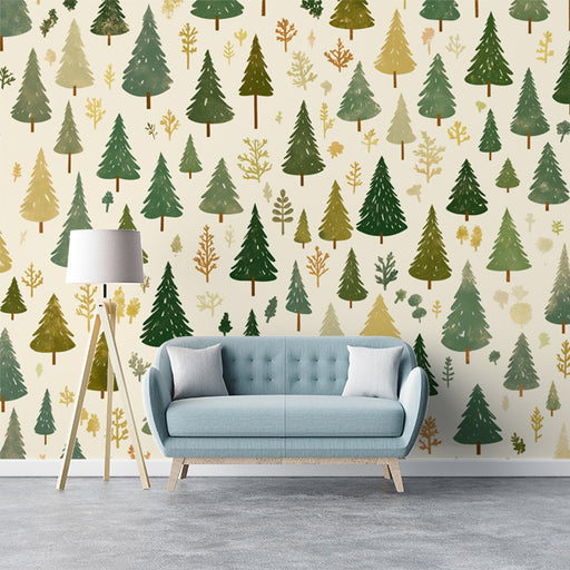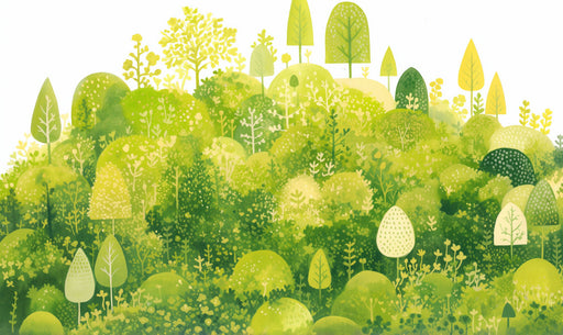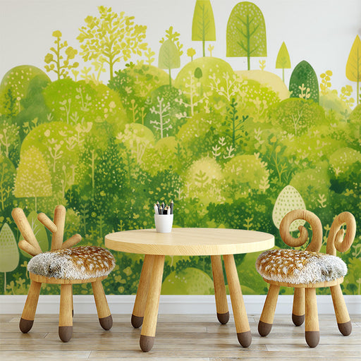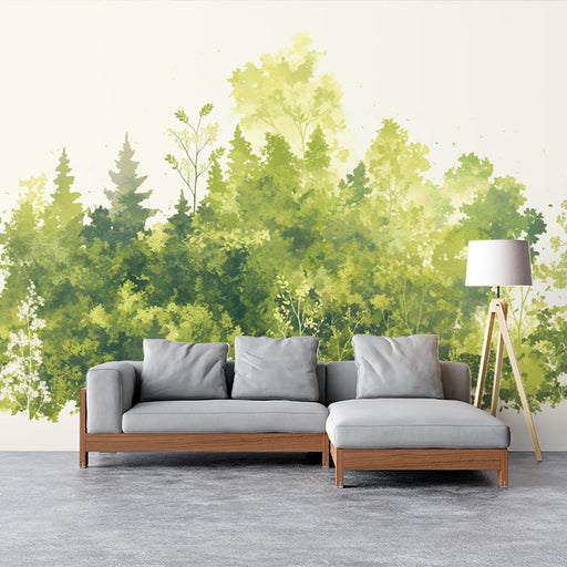 Vollständige Details anzeigenÜppiges grünes Waldwandbild | Verschiedene Grüntöne und gelber Wald