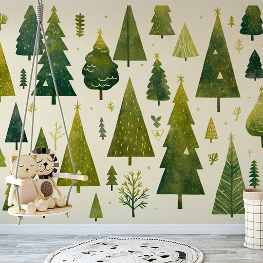 Vollständige Details anzeigenSpielerisches Baumpattern-Wandfoto mit grünen Bäumen, Waldwandmalerei für Kinder, Dekoration für das Kinderzimmer, skandinavisches Waldthema, umweltfreundliches Material