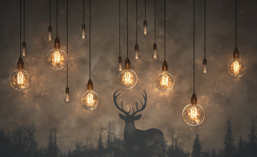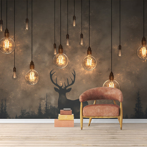 Vollständige Details anzeigenDunkles Wald- und Hirsch-Mural-Tapete | Schwarzbrauner und Dunkelgrüner Hirsch