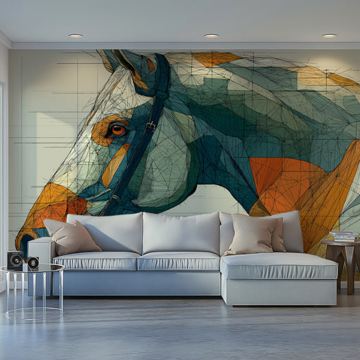 Geometrisches Pferdekopf-Porträt Tapete | Abstrakte Equine Kunst mit modernen Linien