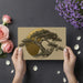 A minimalist yet powerful fine art wall mural featuring an ancient bonsai tree in detailed line art against a textured gold sun background. This Zen-inspired design blends traditional aesthetics with modern luxury.