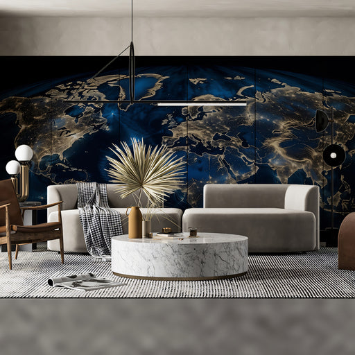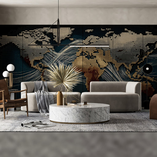 This abstract world map wallpaper is an ideal choice for rustic modern, industrial chic, travel-themed, or eclectic interiors. Its earthy colors and unique style make it perfect for a study, a living room, or a stylish office. Pair it with natural wood furniture, leather accents, and decorative elements inspired by travel to amplify its adventurous aesthetic.