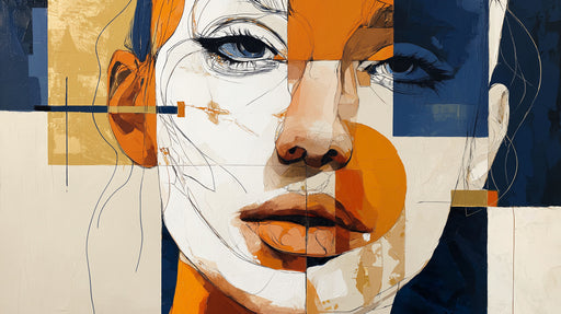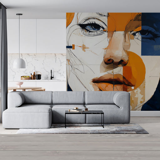 Abstraktes modernes Porträt Tapete | Geometrische Gesichtskunst mit kräftigen Farben