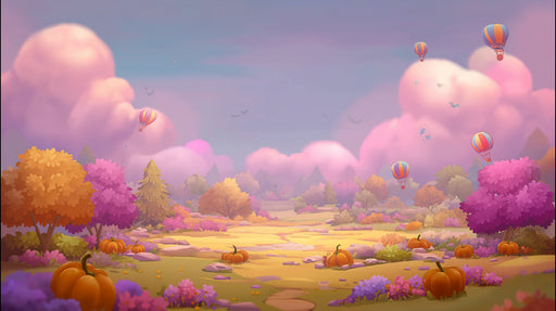 VIVAWALLSSchwebe durch eine traumhafte Halloween-Landschaft mit diesem faszinierenden Hintergrund, der weite Felder unter einem atemberaubenden Pastellhimme...