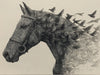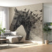Bridled Horse Head Dissolving into Birds Highly Detailed Ink Engraving Mural Wallpaper | Dynamic Portrait