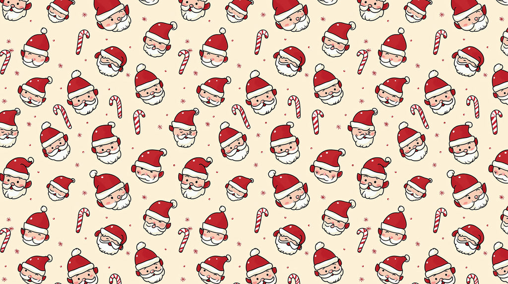 Dense Santa Head and Candy Cane Repeat Wallpaper | Hand-Drawn Style, Warm Cream Background, Bold Lines