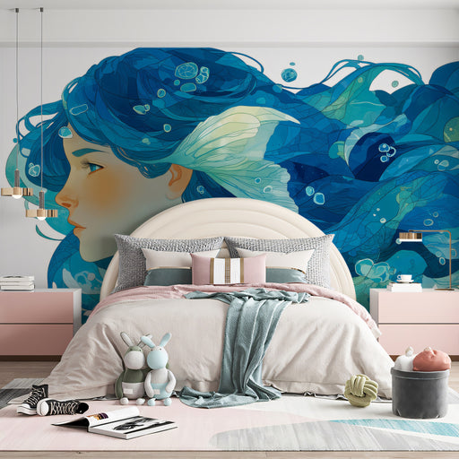 The Ethereal Abstract Celestial Orb Mural Wallpaper is a dreamy, liquid, and atmospheric artwork. It features a translucent, planet-like sphere rendered in soft watercolor washes of deep blue, amber, and sky blue. The bleeding colors and soft-focus textures create a sense of cosmic mystery and peaceful suspension. This mural is ideal for a tranquil bedroom, a creative living room, or a space where a sense of infinite wonder is desired.