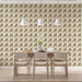 The Fine Geometric Interlocking Square Mosaic Mural Wallpaper is a subtle, complex, and highly textural repeating print. It features a densely packed, uniform pattern of small, geometric cube-like shapes that interlock to form a structured mosaic, rendered in a soothing palette of warm beige and cream. The repetitive structure and careful shading create a rich, tactile surface with a subtle three-dimensional depth, giving it the appearance of woven material or tiny stacked blocks. This mural is perfect for creating a soft, sophisticated backdrop in a cozy dining room, a neutral cafe, or a modern office space.