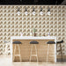 Fine Geometric Interlocking Square Mosaic Micro-3D Texture Repeating Print Mural Wallpaper | Warm Beige Tones