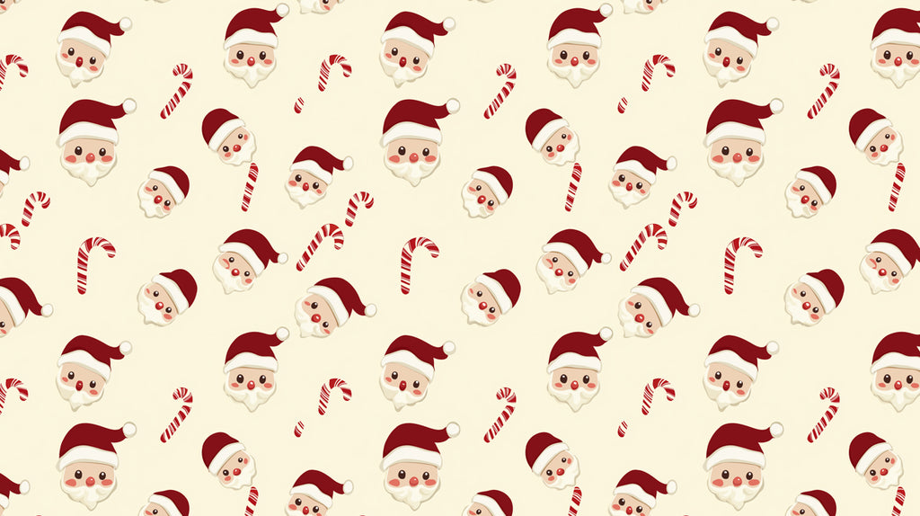Floating Santa Head and Candy Cane Pattern Wallpaper | Cute Christmas Faces, Cream Background, Large Scale