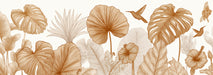 Elevate your walls with this luxurious wallpaper, featuring intricate line art of tropical leaves and hummingbirds in a stunning bronze-gold tone. The design showcases the delicate veins of monstera and banana leaves with precision and grace, set against a pristine white background. The clean lines and metallic hue give the botanical theme a high-end, contemporary twist. This illustration evokes a sense of opulence, clarity, and refined nature, perfect for sophisticated commercial space, home offices, or elegant restaurant.