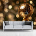 The Golden Soccer Trophy Bokeh Mural Wallpaper is an elegant and celebratory piece of photography. It captures a gleaming, golden soccer ball trophy resting on a dark base, set against a blurred background of warm, golden bokeh lights, suggesting a festive evening or a holiday celebration. The shallow depth of field focuses solely on the intricate metallic texture of the trophy, conveying luxury, achievement, and triumph. This mural is ideal for a corporate bedroom, a sophisticated entryway, or a stylish lounge.