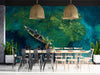 Transform your space into a peaceful oasis with this impasto-style aerial mural. Swirls of vibrant turquoise and emerald waters cradle giant green lily pads, with a solitary boat drifting through the center. The thick, painterly texture adds a luxurious, handcrafted feel to meeting rooms or spa-inspired study.