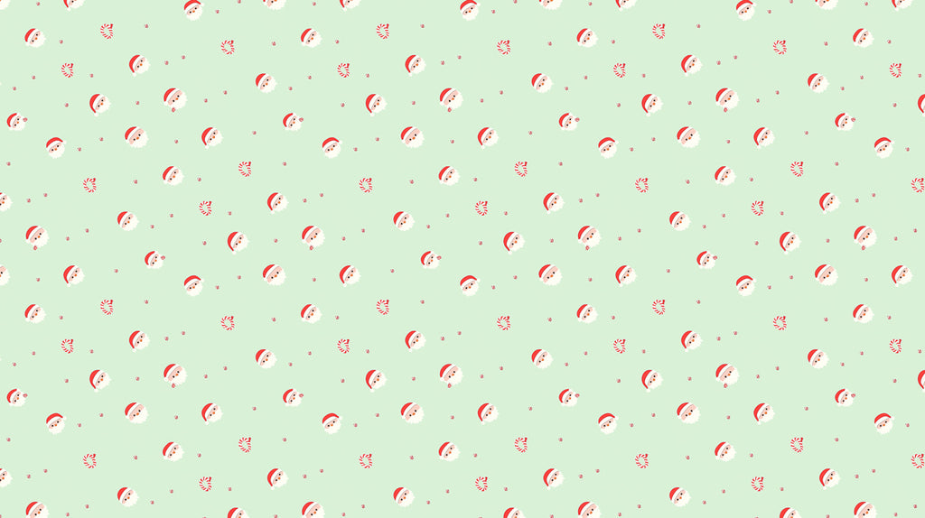 Minimalist Santa Head and Candy Swirl Pattern Wallpaper | Soft Mint Green Background, Delicate Design