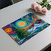 Fügen Sie eine Sicherheitsmarge von 6 bis 10 cm hinzu. Die Gesamtfläche wird in Quadratmetern berechnet und auf die nächste ganze Zahl gerundet.Psychedelic Cosmic Christmas Mural Wallpaper | Vibrant Colors, Sun Mandala, Abstract Landscape