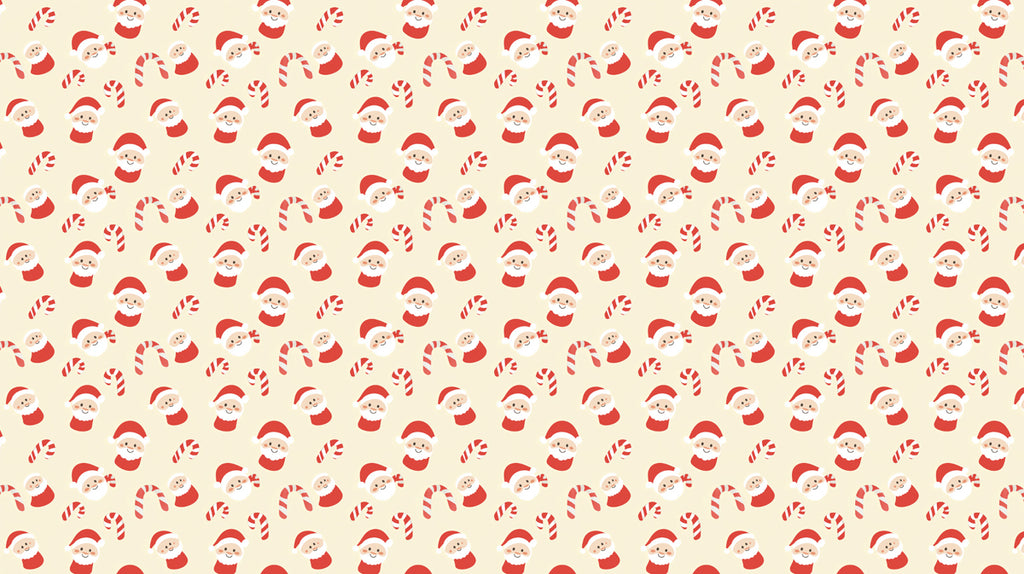 Small-Scale Santa and Candy Cane Diagonal Pattern Wallpaper | Minimalist, Cream Background, Subtle Christmas