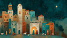 Stylized Bethlehem Night Mural Wallpaper | Medieval Townscape, Starry Night, Warm Entry Scene