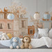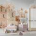The Terrace Cats Cityscape Mural Wallpaper is a richly textured and warmly inviting piece of art. The design features a romantic cityscape of European buildings rendered in a gorgeous palette of terracotta, warm sepia, and blush pink, highlighted by touches of pale blue. A lively group of cats perches on the rooftops and chimneys, adding a playful, narrative touch. Abundant flowering trees and large rose bushes frame the street level, creating a lush, organic feel. The soft, painterly watercolor technique gives the mural an exquisite, sun-drenched quality. This mural is an ideal choice for a cozy dining area, a charming library, or a bedroom seeking a warm, Mediterranean-inspired elegance.