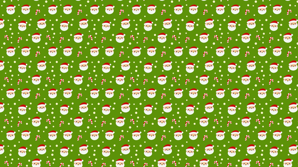 Tightly Packed Santa Head Dot Pattern Wallpaper | Classic Christmas Green, Repeating Grid, Festive