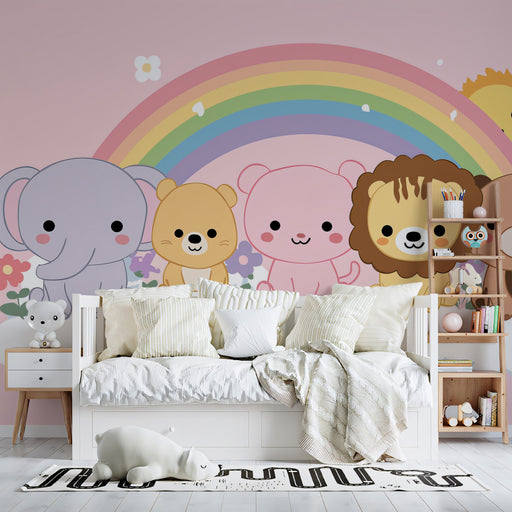 VIVAWALLSEl mural de la alineación del arcoíris de animales kawaii es un diseño adorablemente dulce. Presenta una alineación de animales rechonchos y estili...