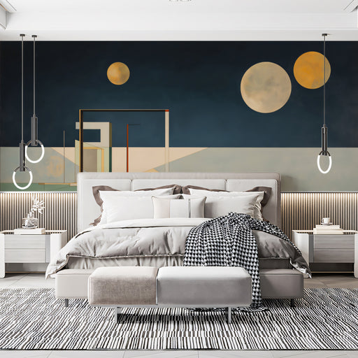 Consejos de VivaWalls.com: Complementa sus tonos azules profundos, verdes y acentos dorados con muebles minimalistas, iluminación ambiental sutil y elementos metálicos para enfatizar su atractivo sofisticado y artístico. 🌌🏛️✨🌙