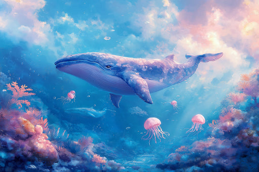 Los colores son armónicos de una manera audaz y colorida, creando una escena visualmente impactante y equilibrada. Los cálidos naranjas y amarillos del atardecer contrastan con los fríos azules y púrpuras de las olas y el cielo, mientras que la paleta de colores general es cohesiva y atractiva.