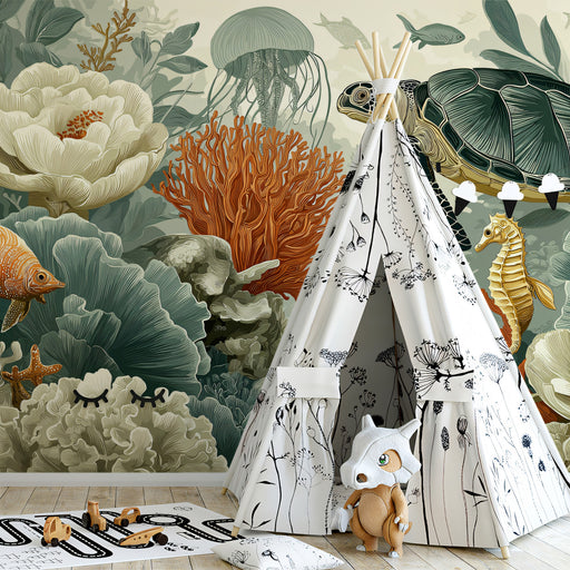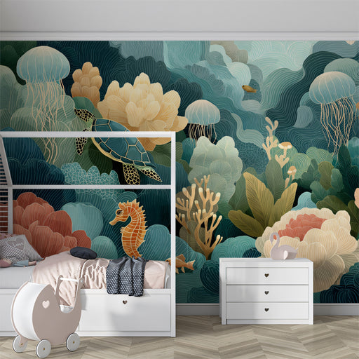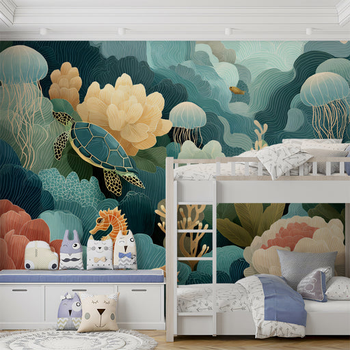 El estilo es artístico y vibrante, con un enfoque en un motivo de atardecer en la playa. Este papel tapiz sería ideal para una sala de estar con una decoración contemporánea, ecléctica o inspirada en el arte. También podría funcionar bien en una sala de comedor u oficina en casa para añadir un toque de color y un elemento visual único.
