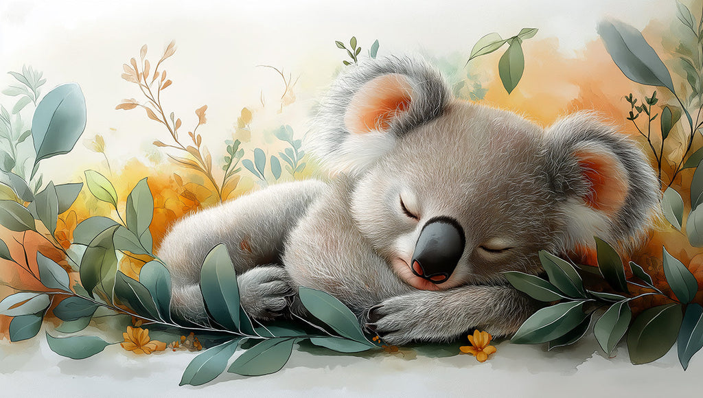 Este papel tapiz muestra un dulce koala azul durmiendo pacíficamente bajo un arcoíris colorido, rodeado de flores y nubes. El diseño es caprichoso y onírico, lo que lo hace perfecto para una sala de juegos. Puede estimular la imaginación de un niño y crear un ambiente divertido y atractivo. Los colores brillantes y el lindo koala añaden una sensación de alegría y asombro al espacio. Los colores en este papel tapiz son armónicos y crean una atmósfera visualmente estimulante y alegre. El koala azul contrasta bellamente con los cálidos colores del arcoíris, mientras que las flores y las nubes de varios colores añaden profundidad e interés. La combinación de estos colores funciona bien para crear un diseño cohesivo y atractivo.