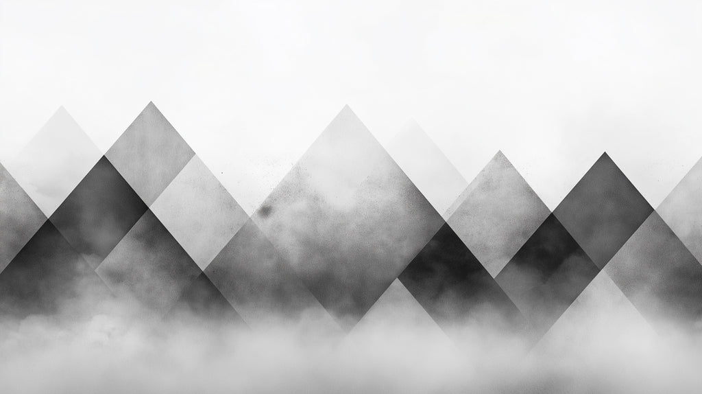 Sumérgete en un mundo de serena contemplación con este cautivador fondo de pantalla, que presenta un paisaje minimalista de montañas geométricas envueltas en una suave y etérea bruma. Representado en una sofisticada paleta monocromática de negro, blanco y diversos tonos de gris, los ángulos pronunciados de las cumbres se fusionan a la perfección con la neblina suave y fluida, creando una sensación de profundidad, misterio y belleza tranquila. Las texturas sutiles añaden interés visual, atrayendo al espectador hacia su atmósfera envolvente. Esta ilustración es perfecta para crear una atmósfera calmada, contemplativa y sofisticada en salas de estar, estudios, o cualquier espacio que aprecie el arte minimalista y los paisajes serenos.
