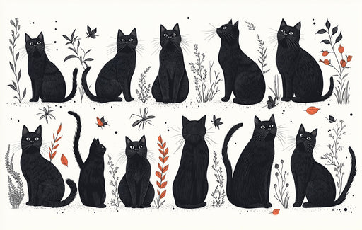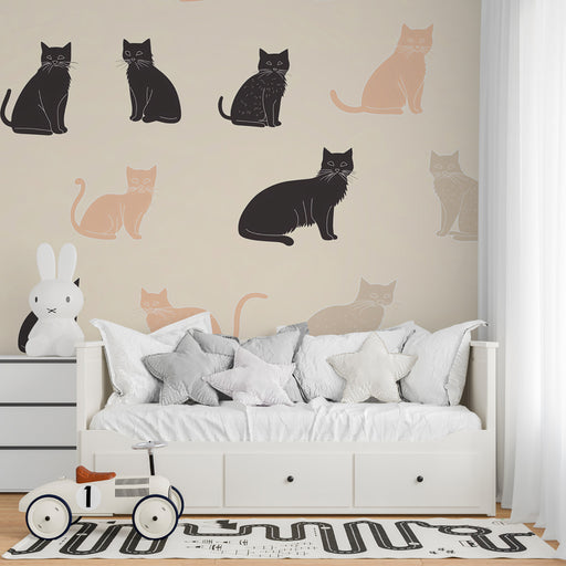 VivawallsEste papel tapiz muestra una fila de gatos negros con llamativos ojos amarillos sobre un fondo beige. El diseño elegante y misterioso agrega un toq...