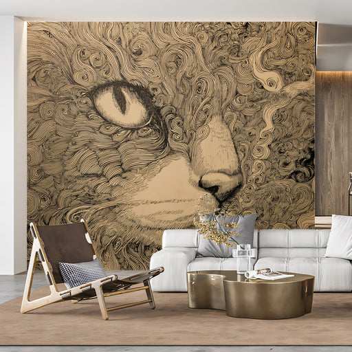 Ver todos los detallesPapel tapiz mural artístico de gato | Color - Perfil felino en espiral