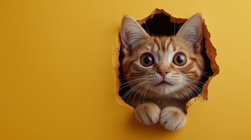 VivawallsEste papel tapiz presenta un efecto 3D de un gato asomándose a través de un agujero en una pared amarilla. La representación realista del gato y el...