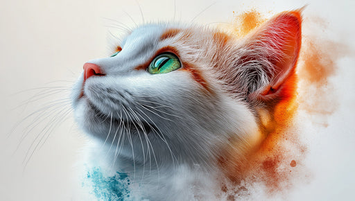VivawallsEl póster muestra un gato de perfil con sus rasgos representados en un remolino de colores como naranja, azul, blanco y rojo contra un fondo negro....