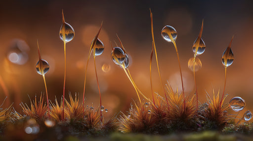Ver todos los detallesGolden Dew on Moss - Macro Nature Fantasy Mural