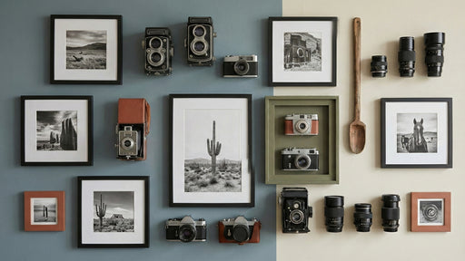 Vivawalls StoreThe Vintage Camera and Photography Gallery Wall Mural features a highly realistic and stylish trompe l'oeil display of a curated gallery wall, show...