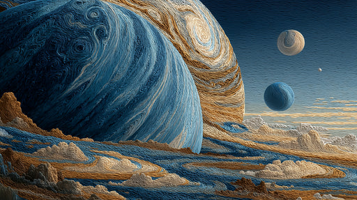 Ver todos los detallesMurales de papel tapiz de gigante gaseoso con textura macro | Arte de fibra de Júpiter, vista de cerca, tonos terrestres y azules