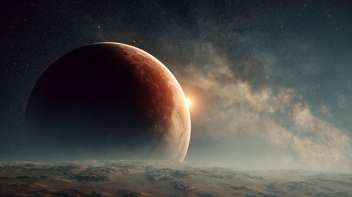 Ver todos los detallesMural de planeta en primer plano similar a Marte | Paisaje de roca roja, nebulosa distante, tonos terracota