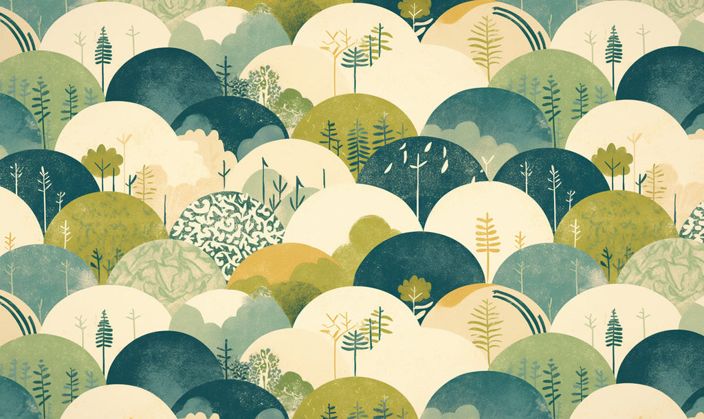 Este papel tapiz presenta un patrón abstracto de colinas forestales en varios tonos de verde amarillo azul y beige. Las formas circulares y la combinación de colores crean una apariencia juguetona y moderna. El efecto general es dinámico y visualmente interesante haciendo que sea una gran elección para añadir un toque único a una habitación