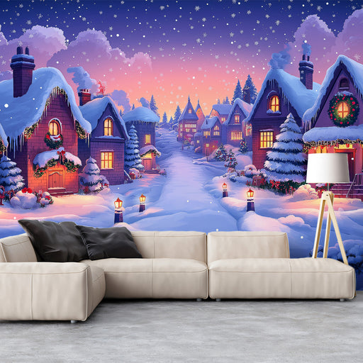 Ver todos los detallesMurales de Papel Tapiz de Paisaje Urbano Invernal Encantador con Casas Festivas | Escena Navideña Acogedora