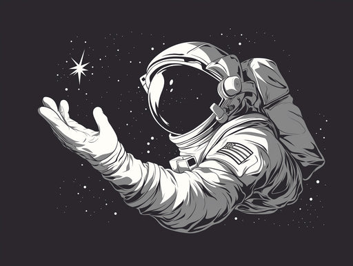 VivawallsEste póster presenta una impresionante ilustración en blanco y negro de un astronauta con un traje espacial, con una mano señalando hacia adelante....
