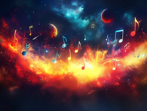 Ver todos los detallesCosmic Music Harmony Mural Wallpaper | Vibrante Simfonía de Nebulosa