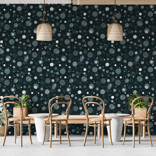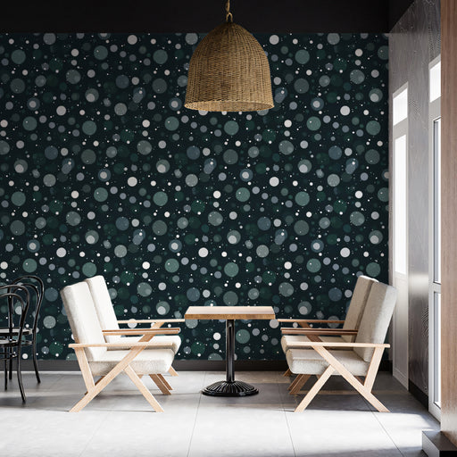 Ver todos los detallesRandom Dot Abstract Mural Wallpaper | Repeating Print, Dark Teal Background, Subtle Circles and Bokeh