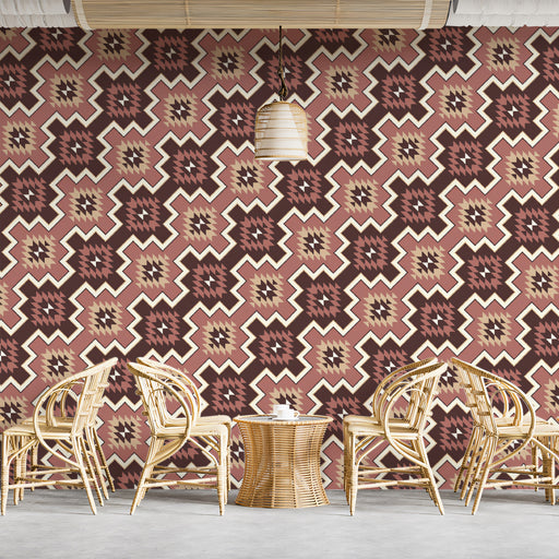Vivawalls StoreThe Geometric Southwest Woven Mural Wallpaper is a bold, structured, and culturally inspired repeating print. It features a continuous, interlockin...