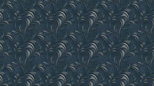 Papel tapiz mural con volutas de damasco real | Azul marino intenso y relieve plateado