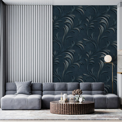 Ver todos los detallesRich Feathered Leaf Mural | Blue & Taupe-Gold, Painterly Texture, Classic Style